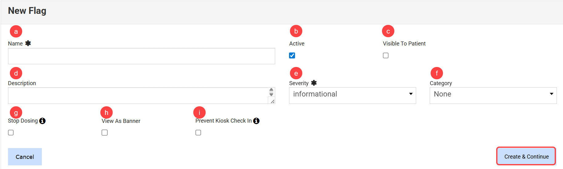 - Prevent Kiosk Check In: This field prevents patients from checking in with kiosk. Click here to learn more about this flag option.