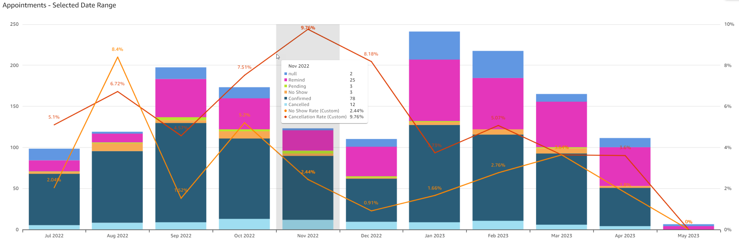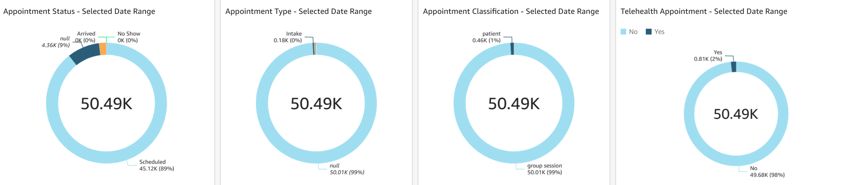 - Admissions - Selected Date Range: Indicates the total number of admissions for the selected date range