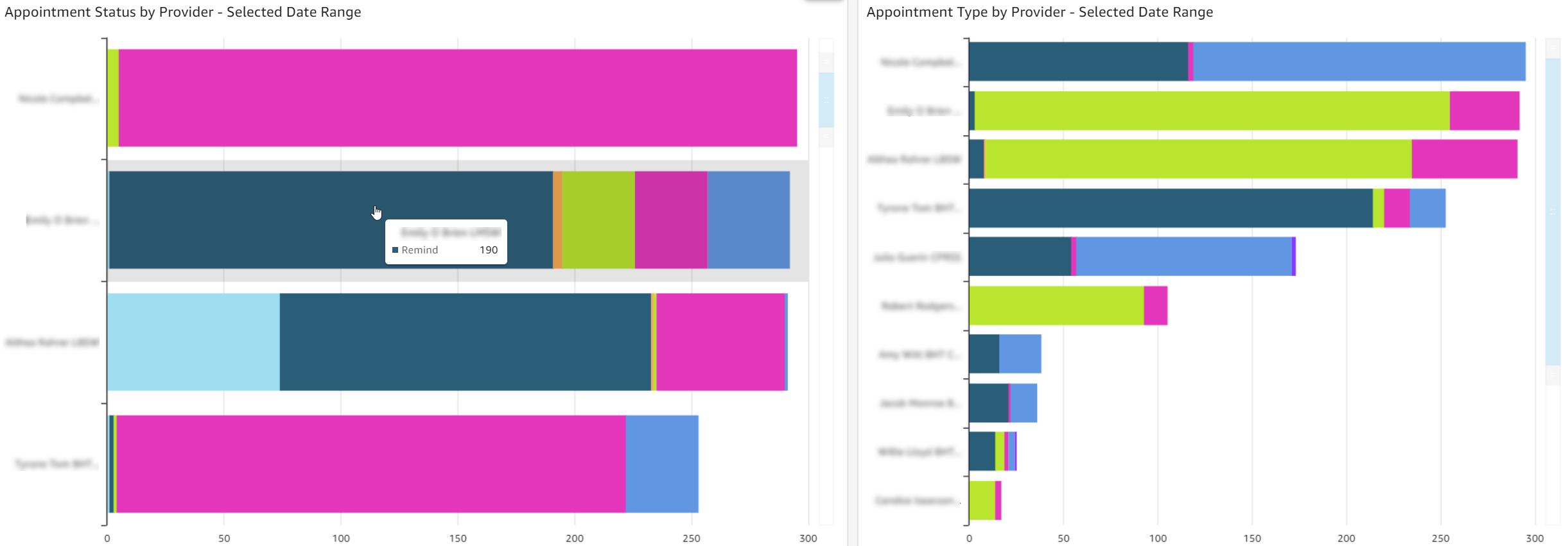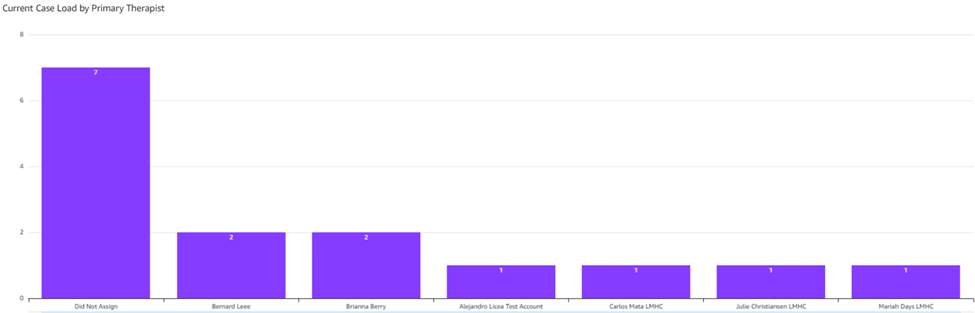 - Current Case Load by Primary Therapist: The graph counts records per primary therapist among patients in the current census.