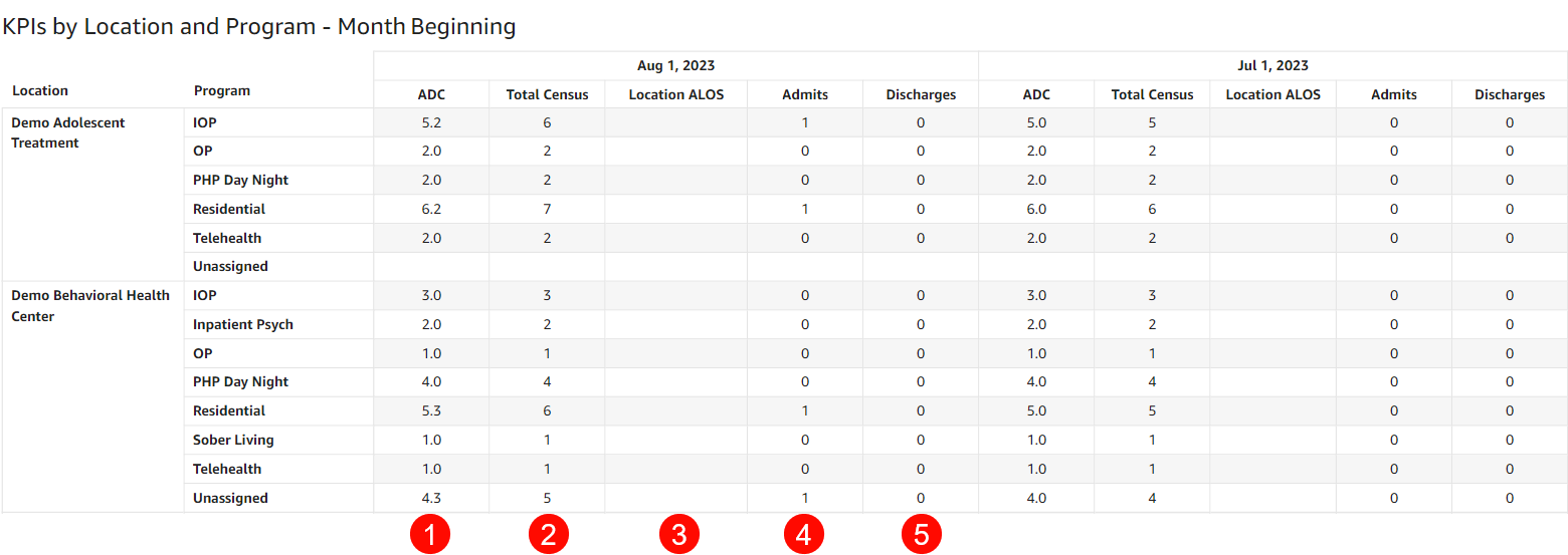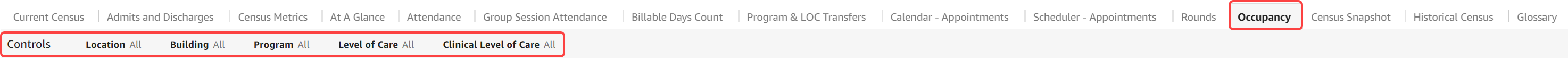 - Occupancy %: Indicates the capacity percentage for a given location, program, or level of care