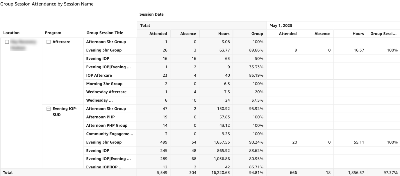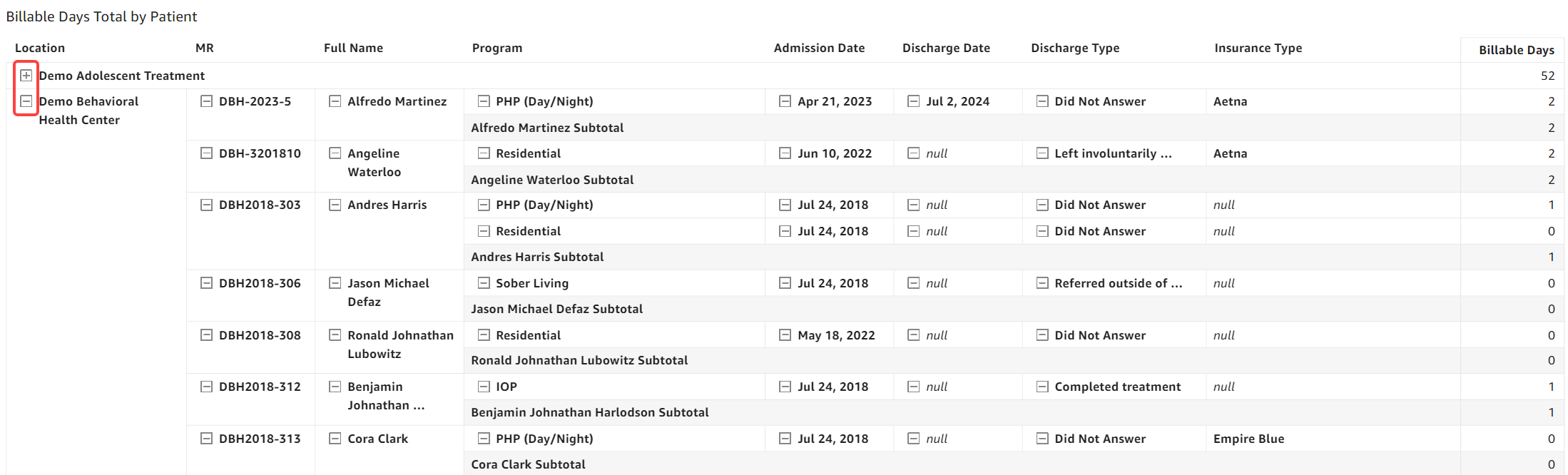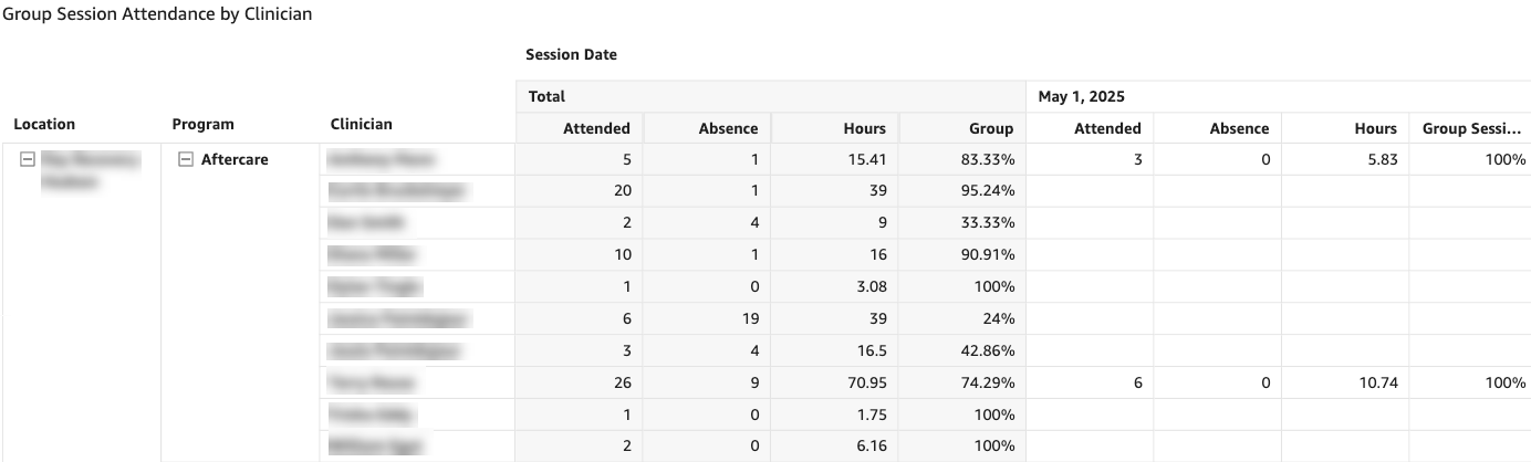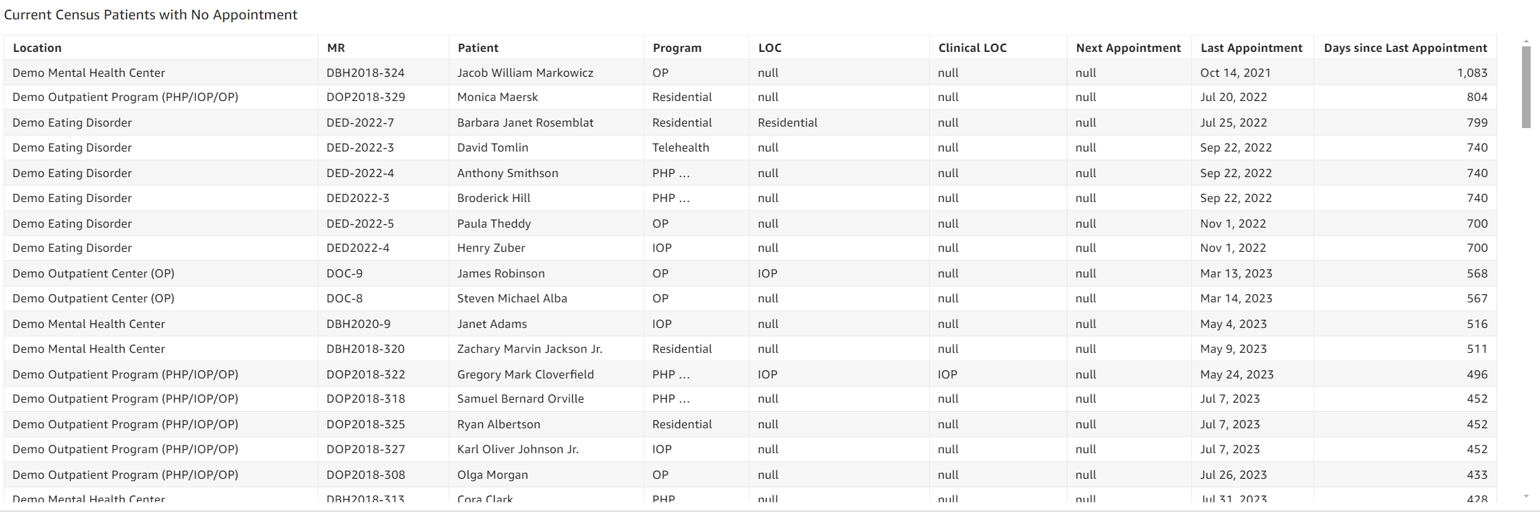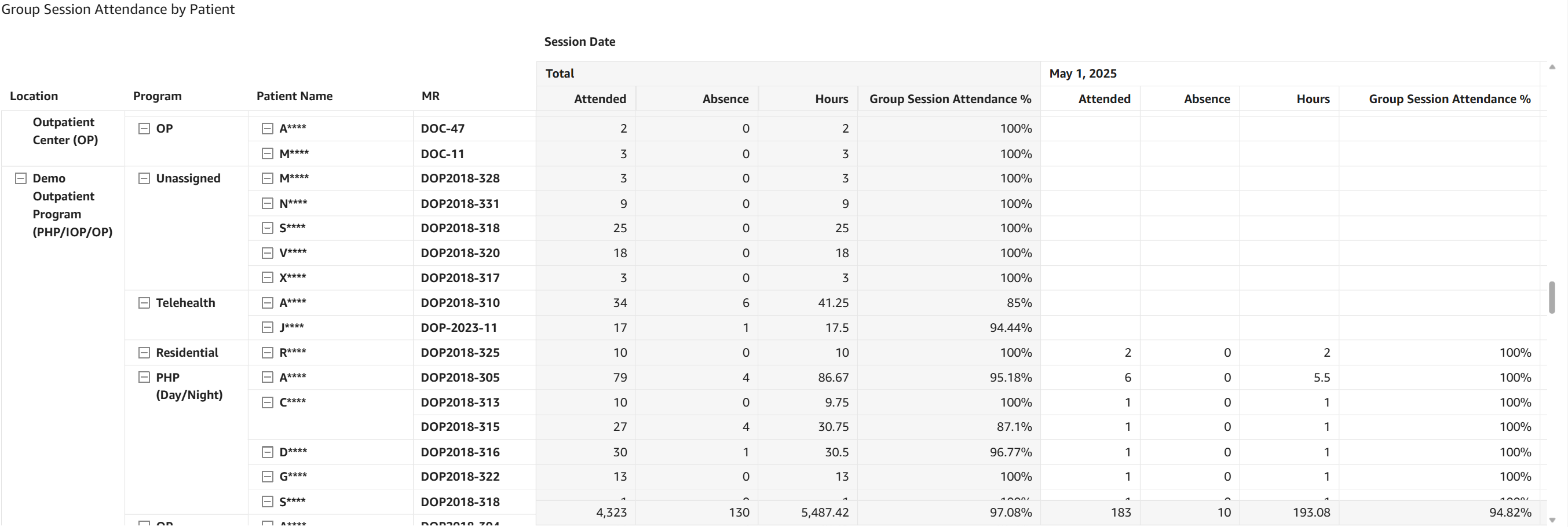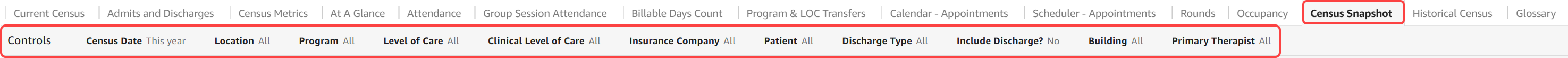 - Census on Date Selected by Primary Therapist: The Current Case Load by Primary Therapist on the selected date.