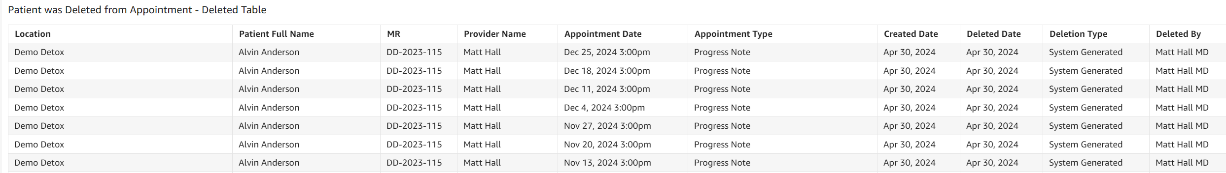 - Patient: Combination of the patient’s first, middle, and last name as defined on the patient’s information tab