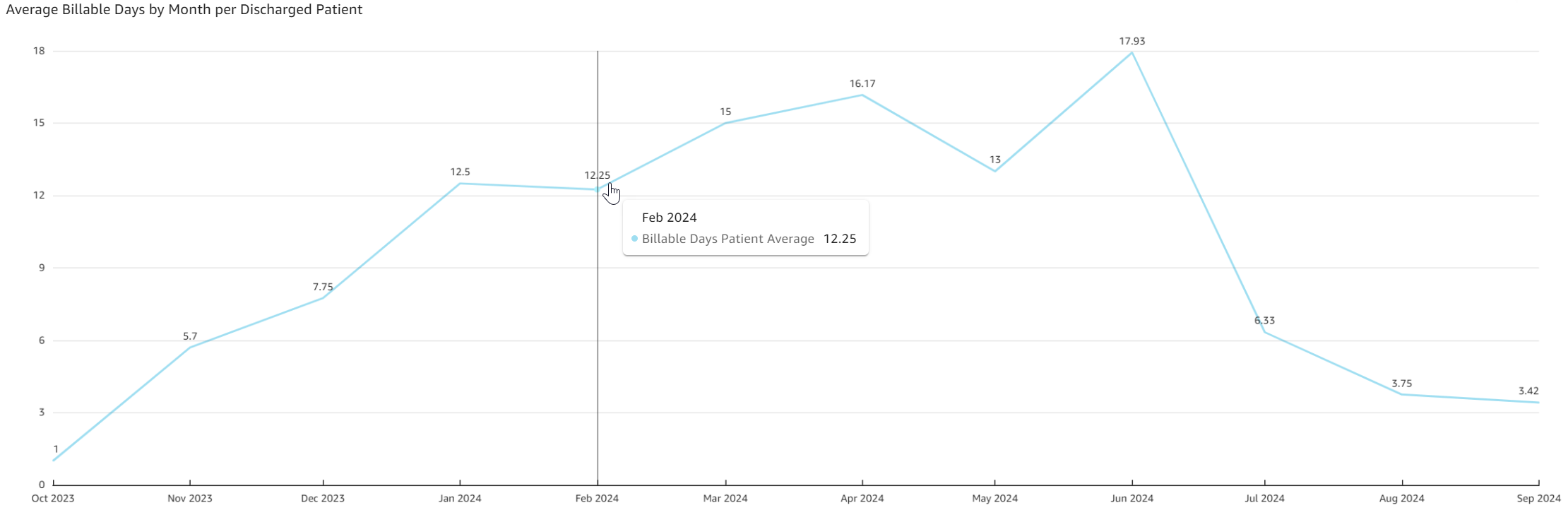 - Average Daily Census - Previous Month: This is the trending indicator of the average number of patients served daily in the previous month (first day - last day).