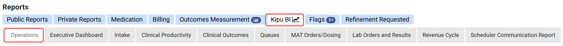- Building: Building options available are in accordance with the instance itself. They will match the locations found in the Kipu EMR instance banner. Building options are listed in alphabetical order and default to All.