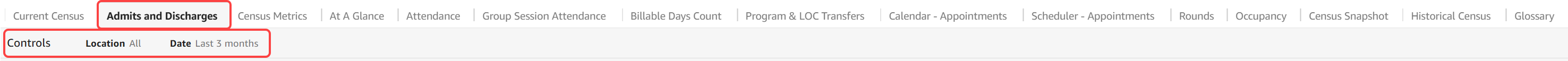 - Admissions vs. Discharges: This graph shows a double line of totals over time for admissions and discharges, and is based on either the admission date or discharge date.
