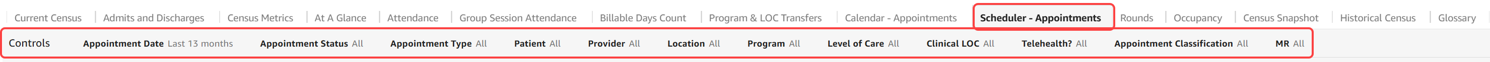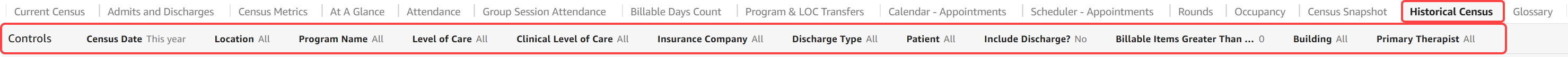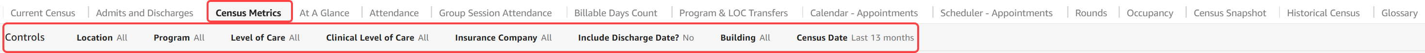 - Census Date: The selected date range defaults to the last 13 months and is tied to the graph trends and any KPIs labeled as 'Selected Date Range'.