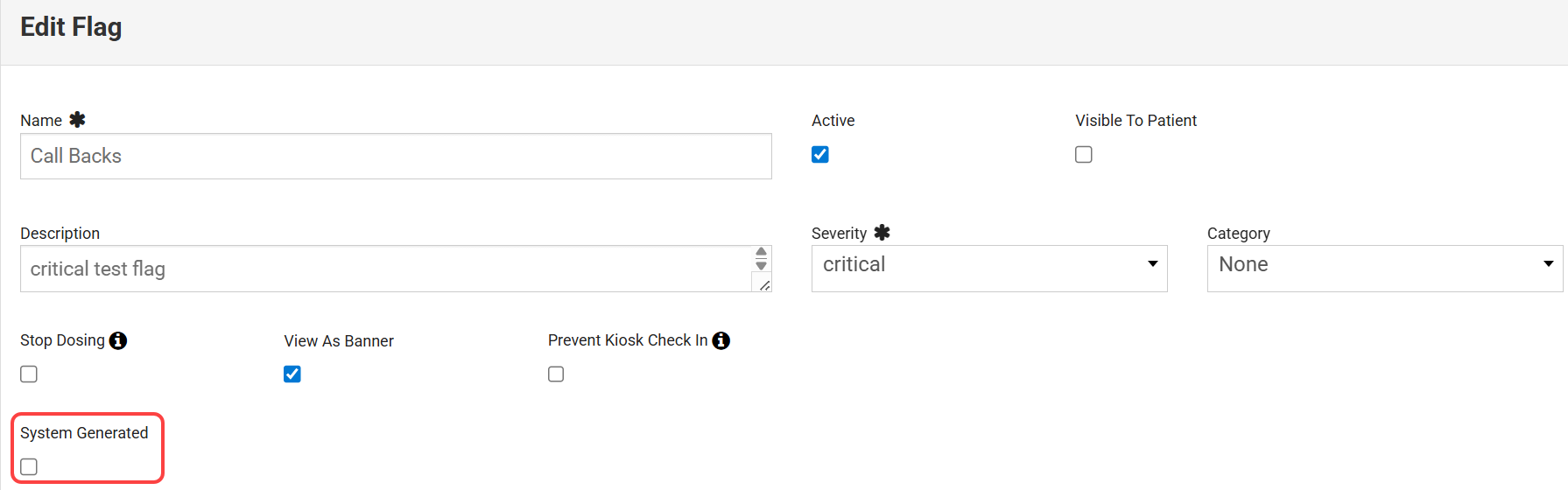 - Check the System Generated box to mark this as a system-generated flag. Additional settings display.