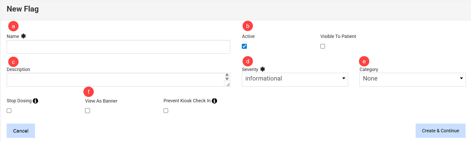 - View As Banner: Select this box if you want the flag to appear as a banner on the patient's chart.