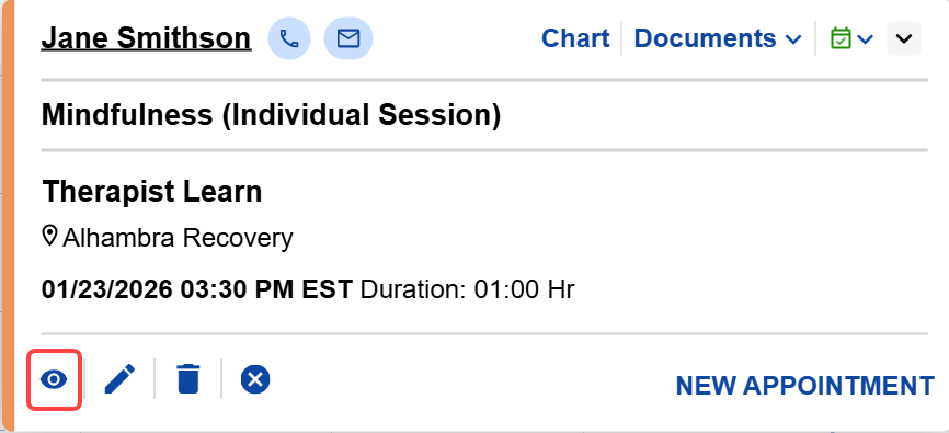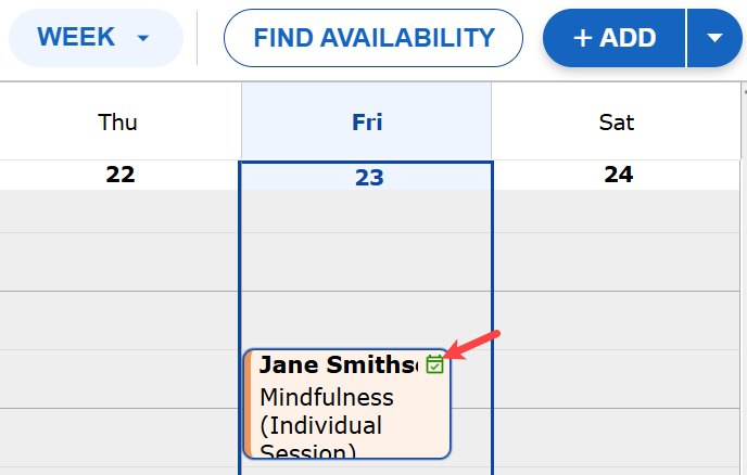- To send a manual message to the patient, navigate to the Scheduler and locate their appointment or group session. Click to open.