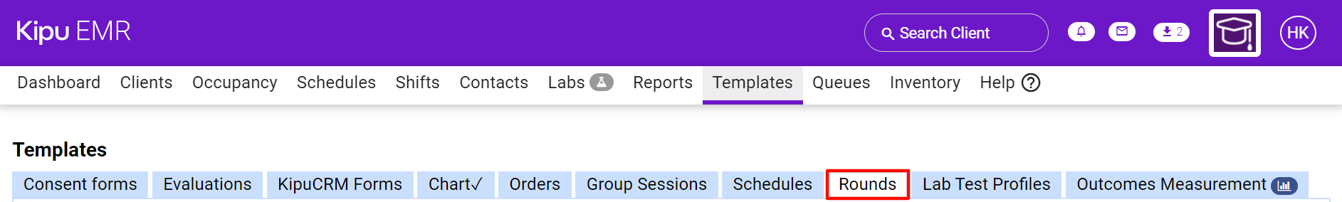 Kipu EMR, Super Admin Role, Templates: Rounds