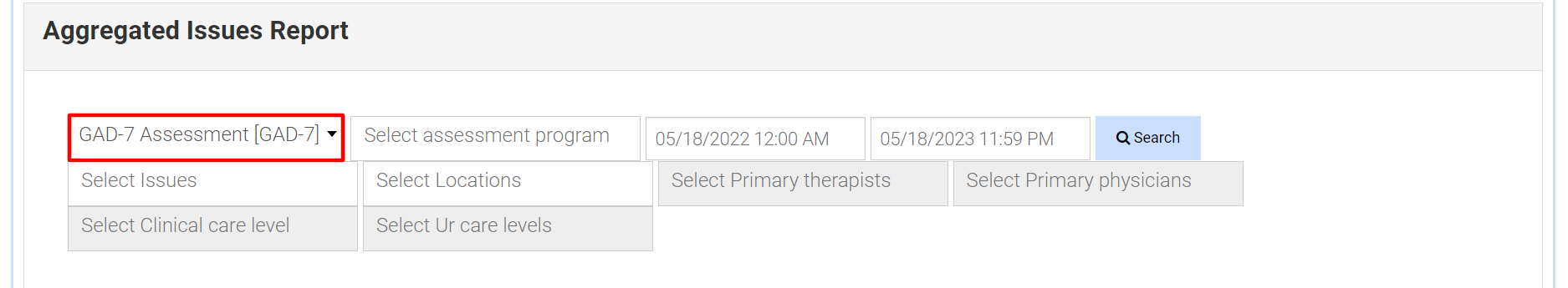 - Select Reports > Outcome Measurements > Aggregated Issues Report.