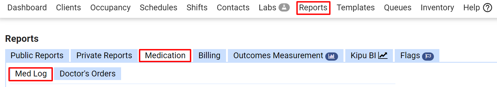 A Super Admin, or a user with the Manage Reports or View Reports features enabled, can pull a report based on medications administered during a set time frame.