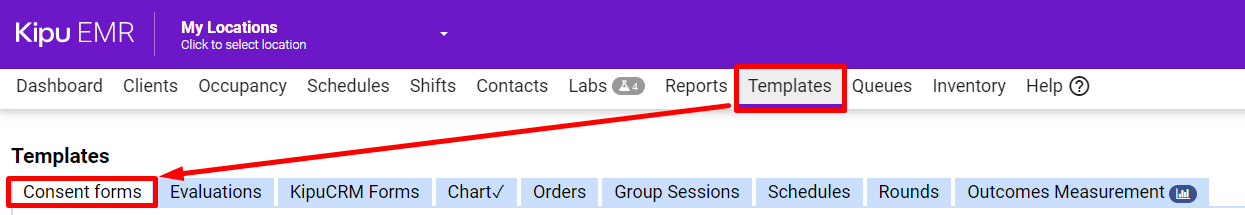 - Begin by clicking Templates > Consent forms.