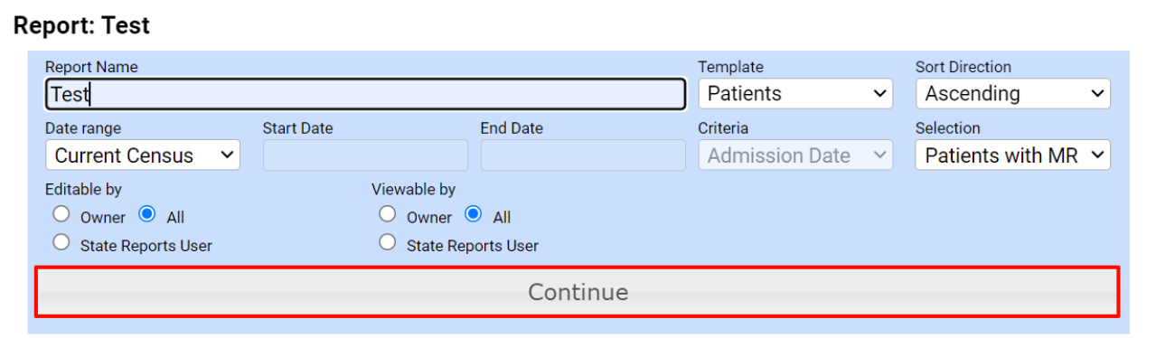- Ensure that Patients is selected in the Template field and adjust any other filters as needed.