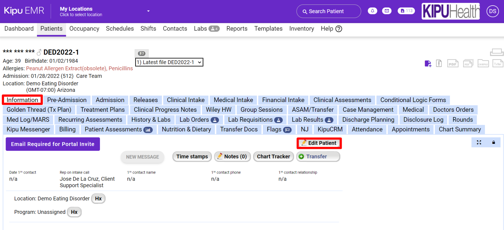 Kipu EMR, eRx Users, Chart: Information tab (Facesheet), Enroll in eRx