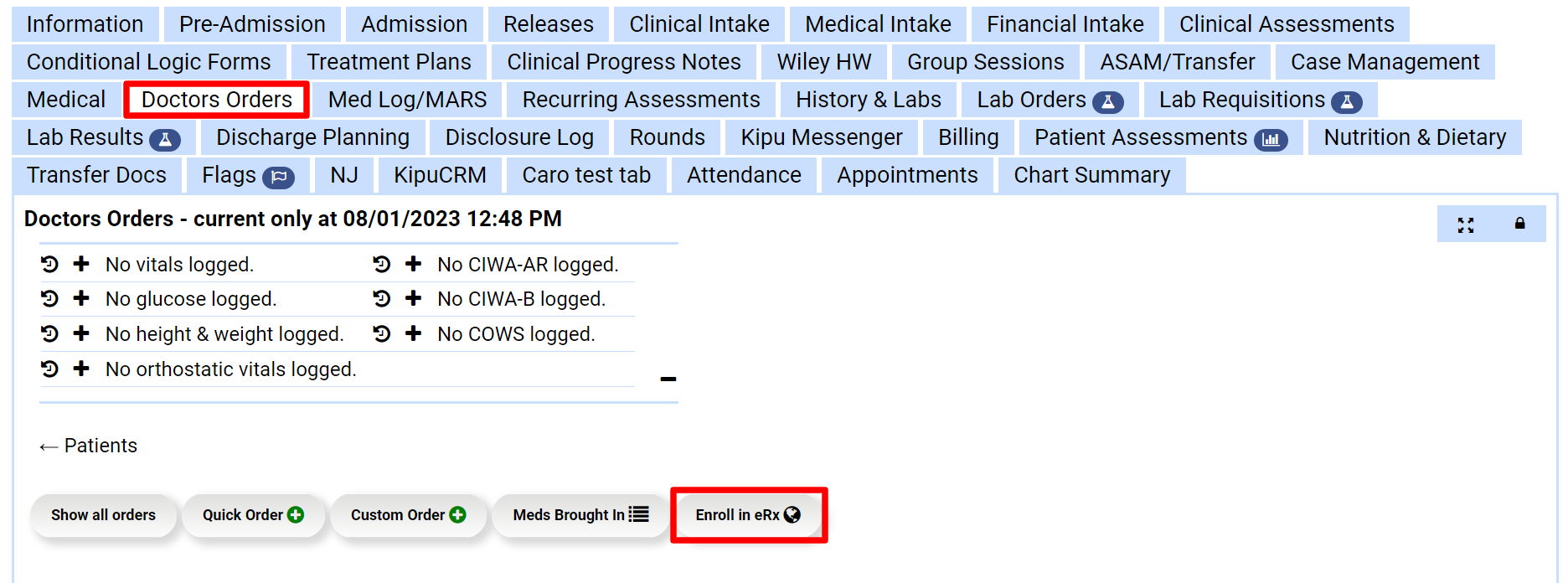 - From the Doctor's Orders tab click the Enroll in eRx button.