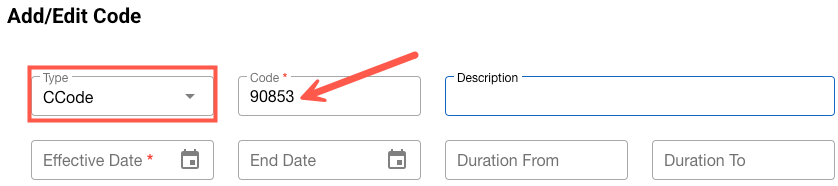 • Because we are creating a service that will bill on a professional claim form, we'll make the 90853 a CCode.