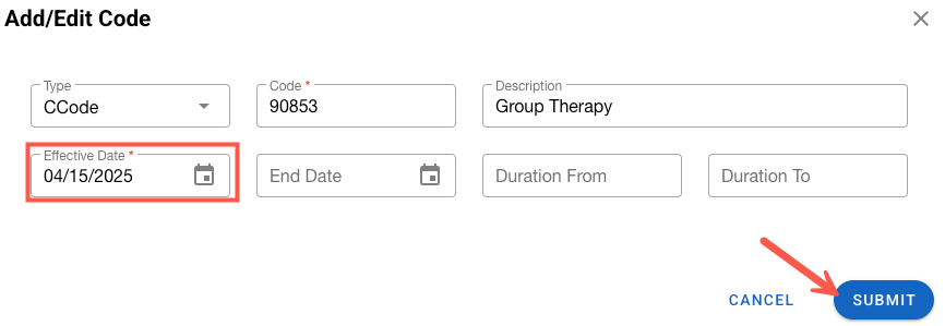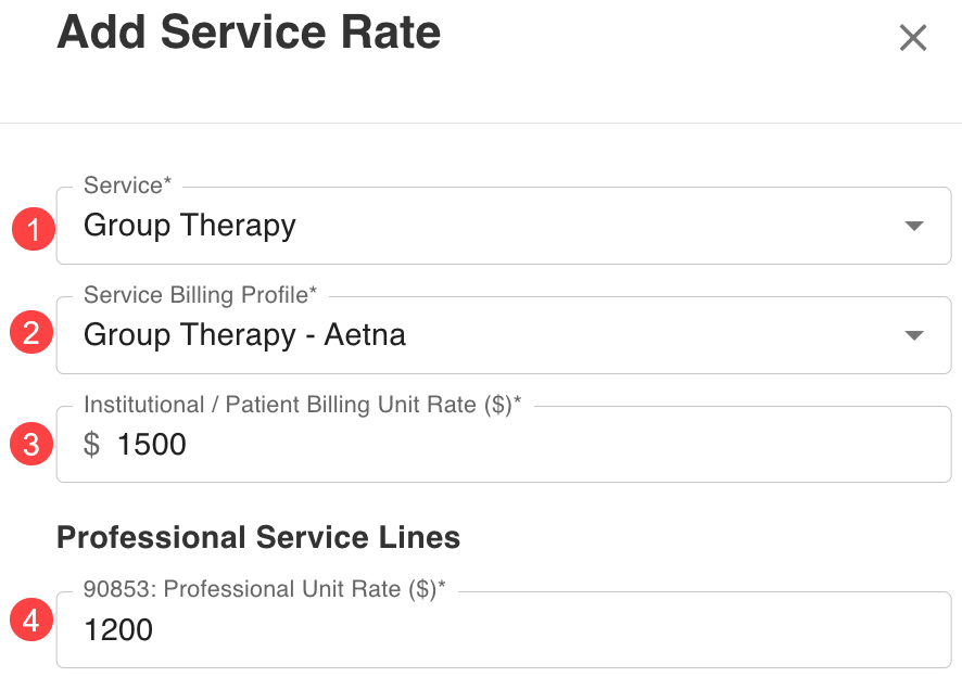 In this example, we'll show how to create a new ancillary service for Group Therapy that we intend to bill professionally with code 90853.