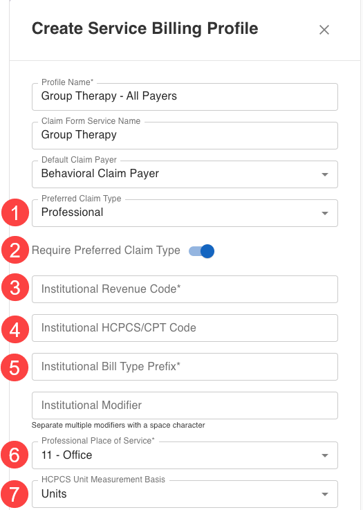 1. Set the Preferred Claim Type to the desired claim format, in this example, Professional.