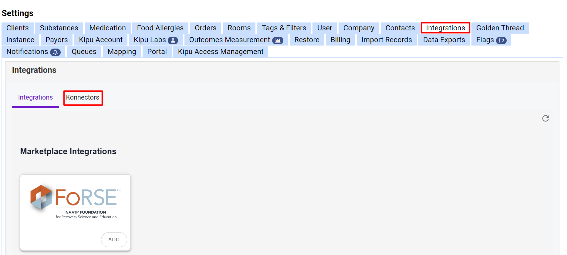 - Click on the Integrations tab and then the Konnectors option.
