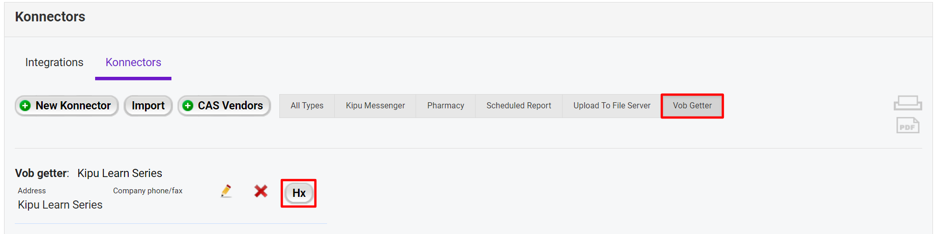 - Within the Konnectors options select the VOBGetter℠ button to filter, and then click the Hx button.