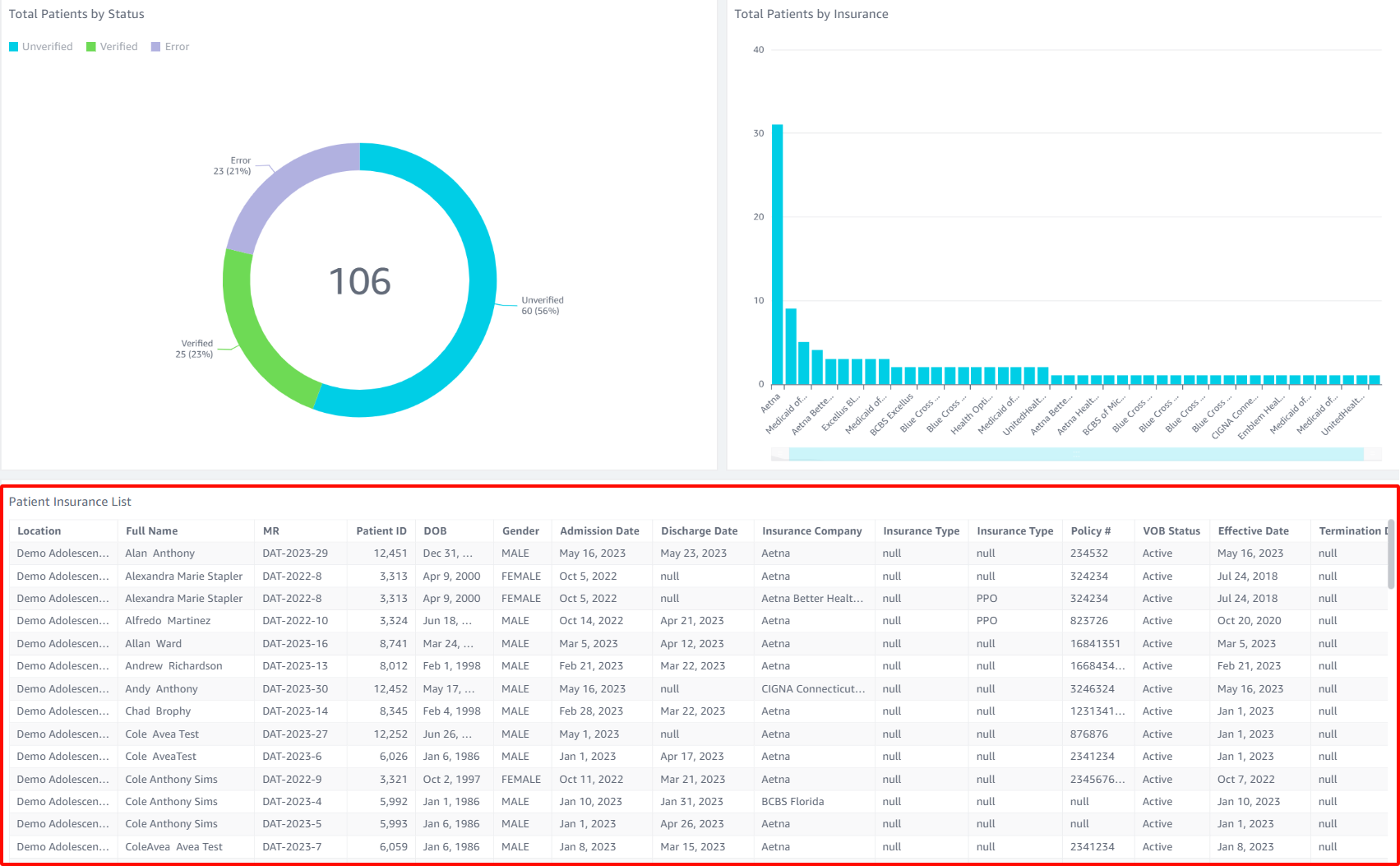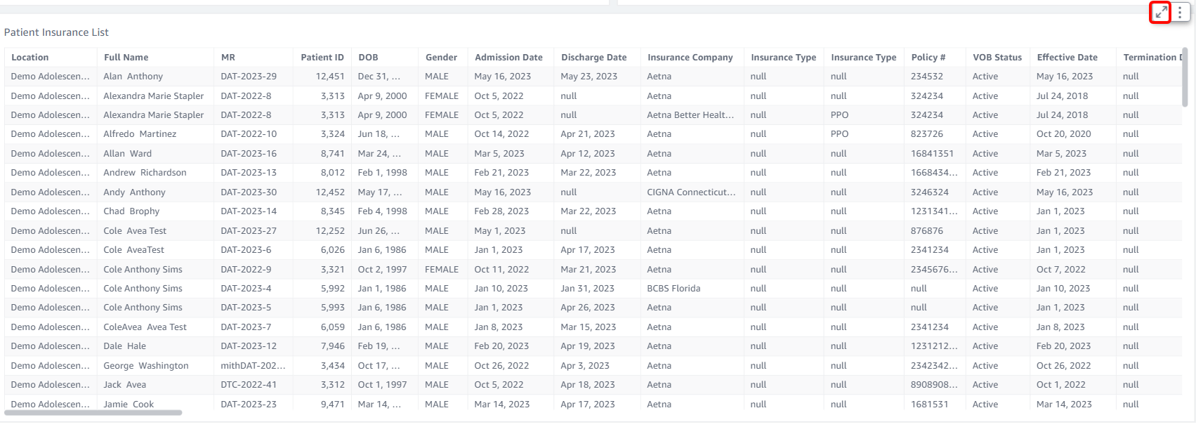 Scroll to the bottom of the VOB data to the Patient Insurance List section to view the data.