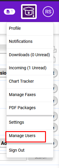 - Select your initials and then the Manage Users option.