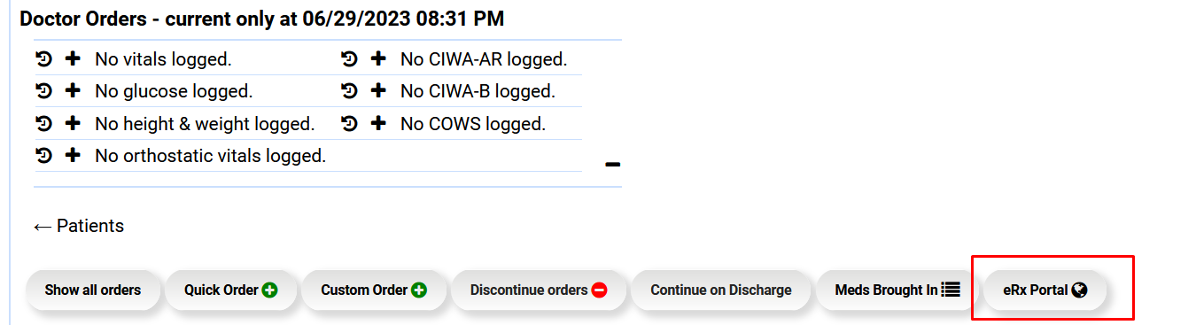 - The user should now be able to see the eRx Portal button on the Doctor's Orders tab of the patient's chart.