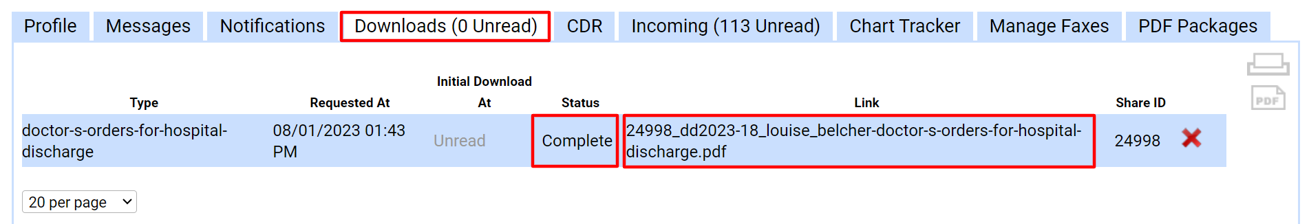 - If the package has not finished pulling you will need to refresh till you see the Complete status, then select the package under the Link column and you will receive the download of the package.