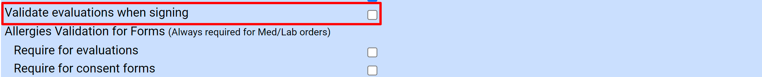 If your facility uses a Master Instance, the Validate Evaluations When Signing option is instance-wide and not location-specific. It is recommended to make sure all locations are aware of the change prior to enabling so there is no confusion causing the feature to be turned off and on between locations.