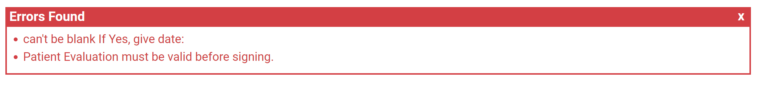 - If you try to sign without a form that has blank fields, you will receive an error message that shows what is missing and that the form needs to be validated prior to signing.