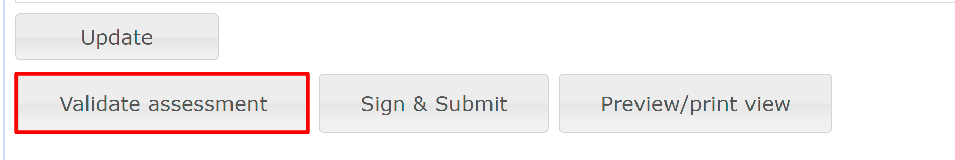 - When this setting is enabled, there will be a Validate Assessment button next to the Sign & Submit button.