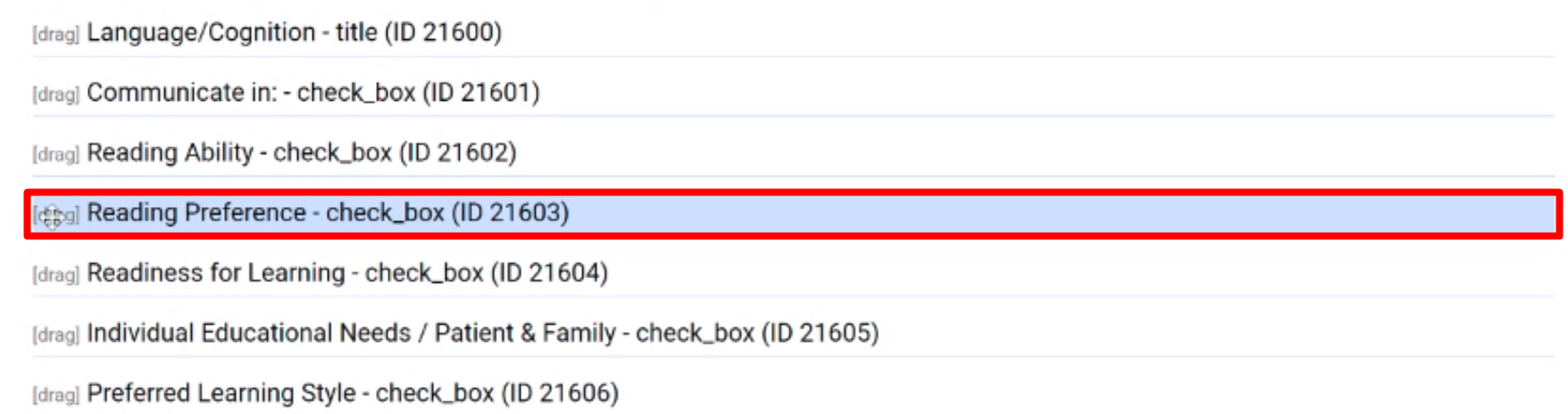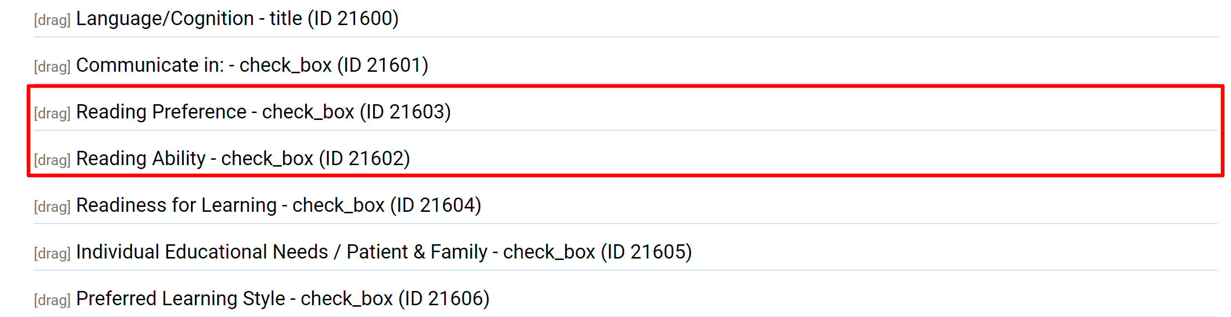 - Hover over the gray [drag] option to the left of the item you need to move till a four-way arrow cursor appears, then click and hold the word [drag] and move it.