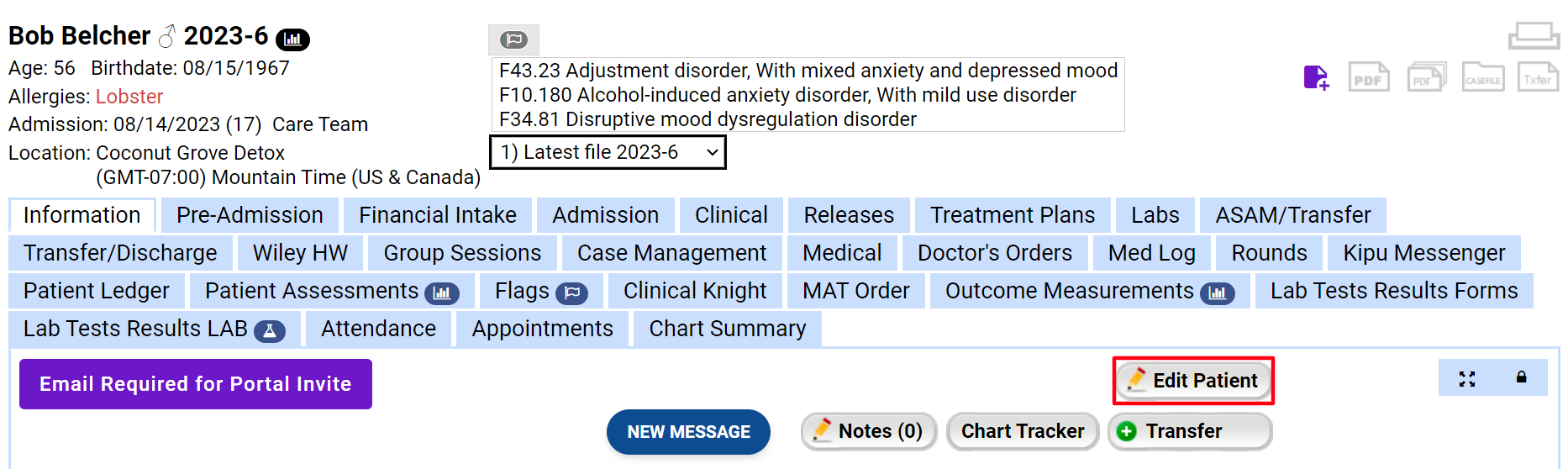 Kipu EMR, Role: Super Admin, Chart: Facesheet/Information Tab, User Profile