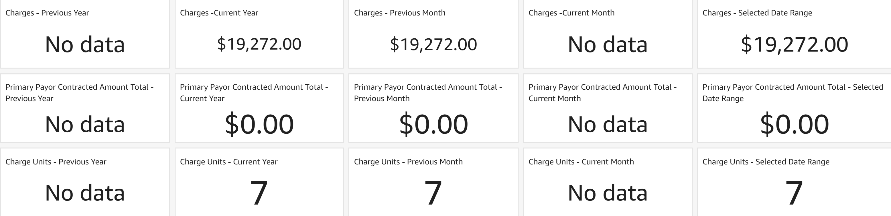 - Charge Units - Selected Date Range: Indicates the total charge units in the selected date range based on date of service