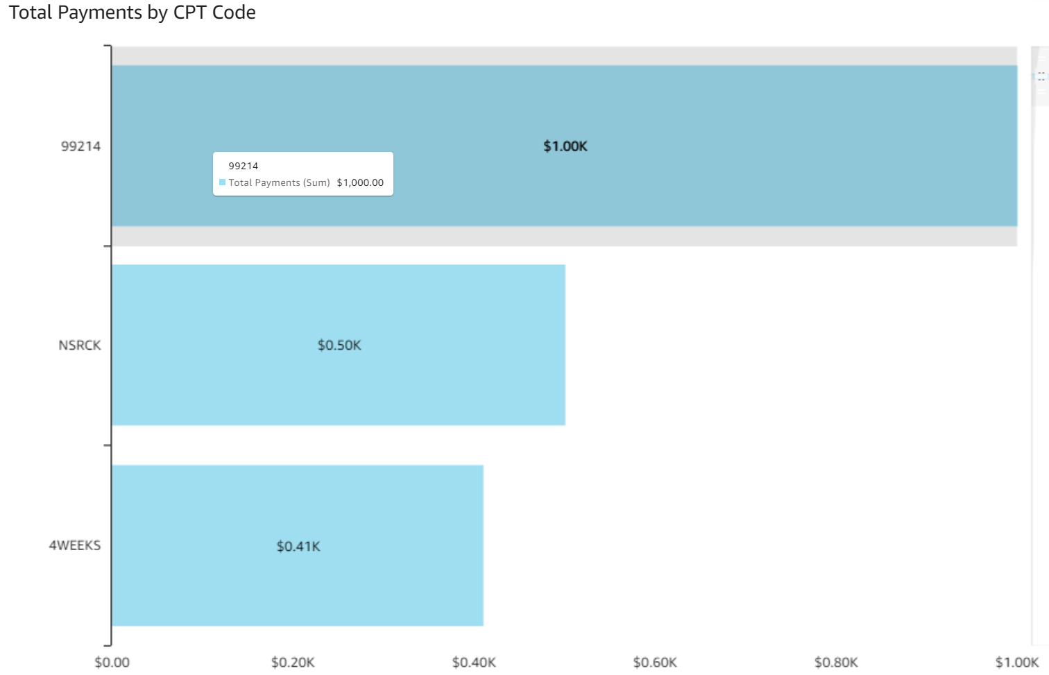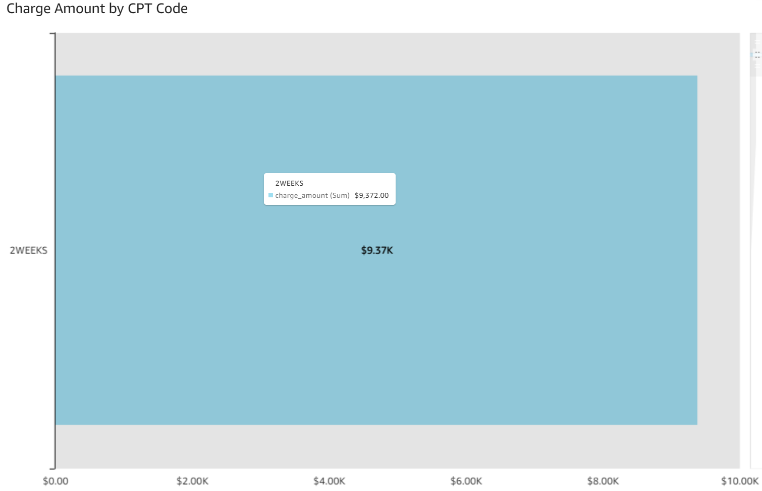 - Charge Amount by CPT: The horizontal bar graph shows charge amounts by CPT code.