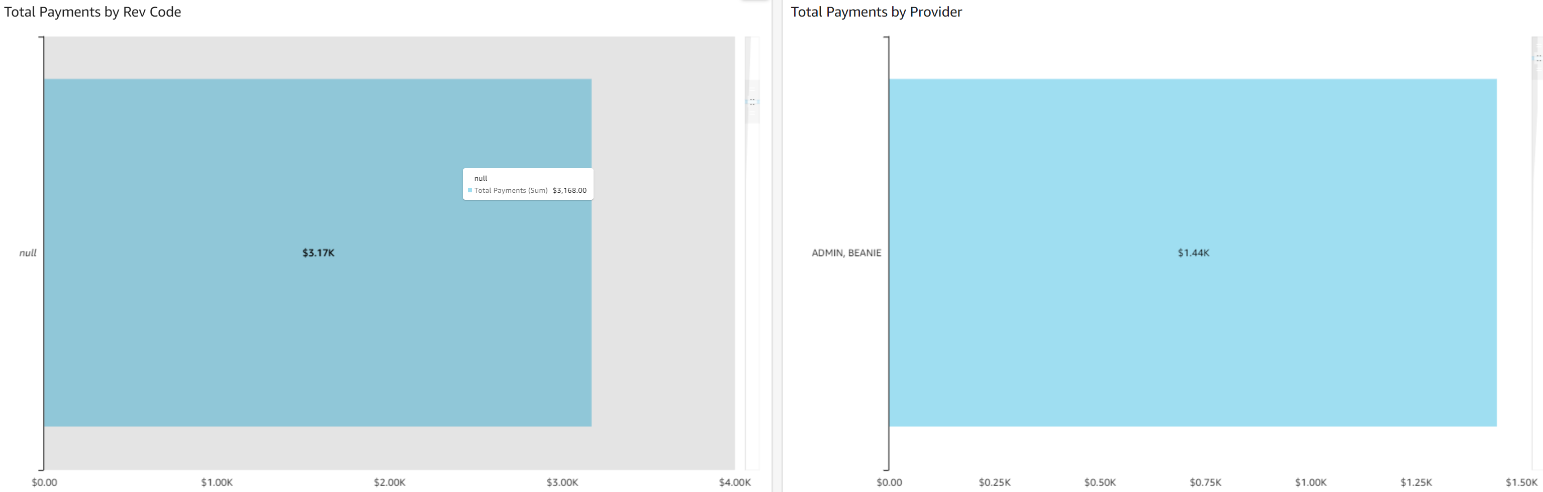 - Charge Amount by Provider: This bar graph shows charge amounts by provider.