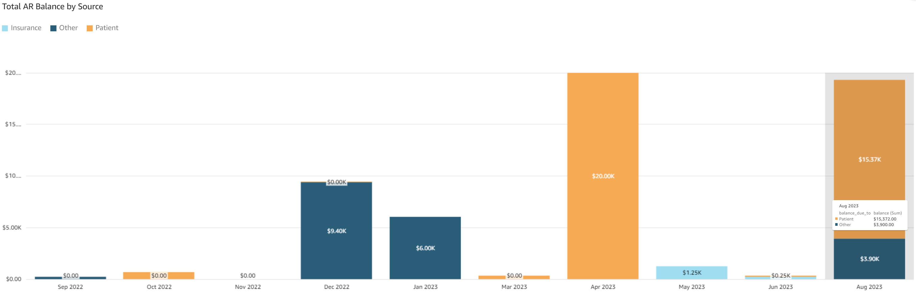 - Patient Payments - Current Month: Indicates the total patient payment amount in the current month (first day of the month - present)