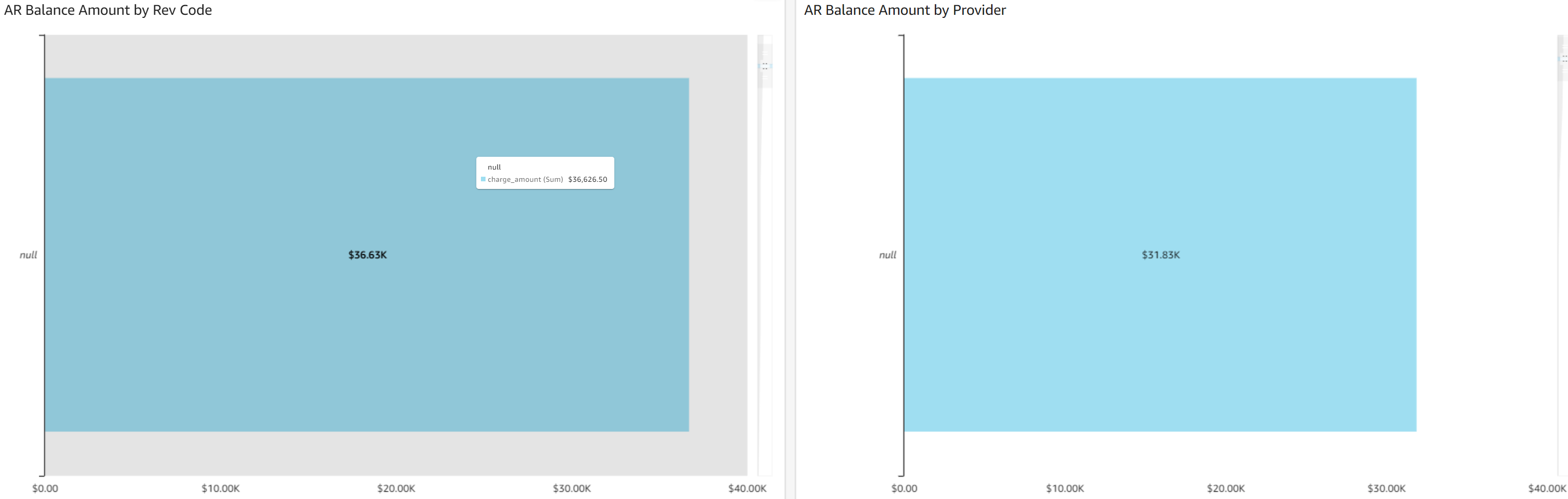 - AR Balance Amount by Provider: This bar graph for AR amounts by provider shows accounts receivables dollar amounts on the bottom and providers on the left.
