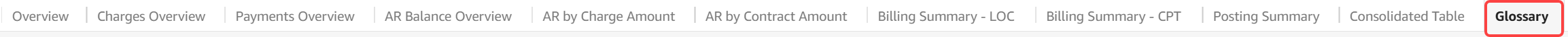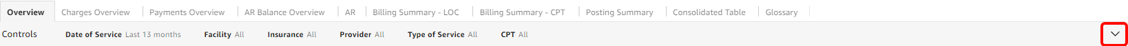 - Charges - Selected Date Range: Indicates the total charges amount in the selected date range based on date of service