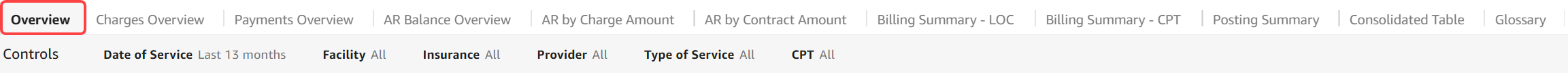 The Overview tab can be used to provide an overall billing summary. Revenue Cycle health and performance can be evaluated through the analysis of transactions and charge lag trending over time and you can determine how long it takes staff to bill certain CPT codes and services. It is important to investigate lagging days because lagging days can cause delays in collections.