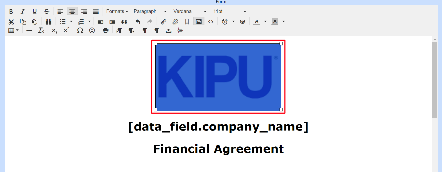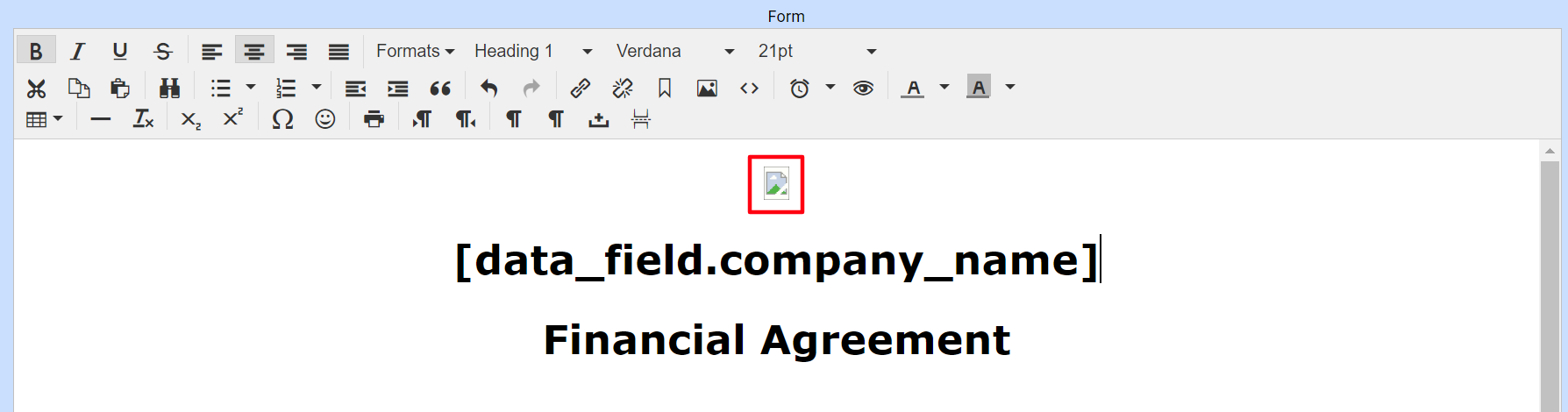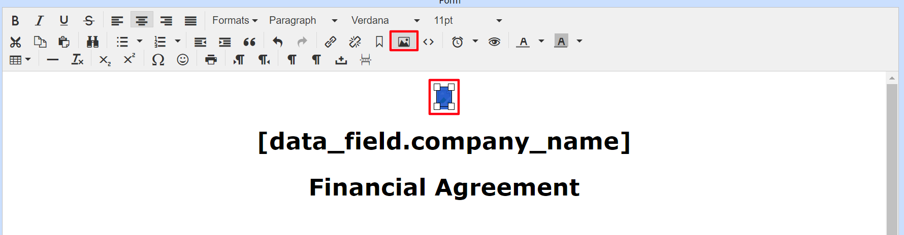 - Locate the broken image within the form and click on it.