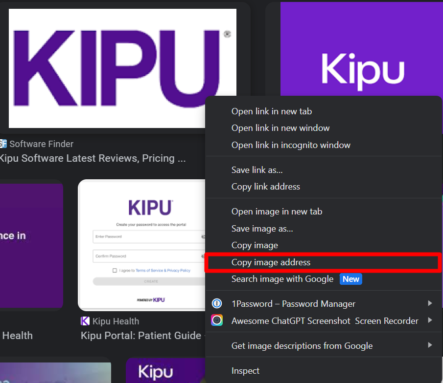 - This can be copied by right-clicking on the image and selecting the Copy Image Address option.