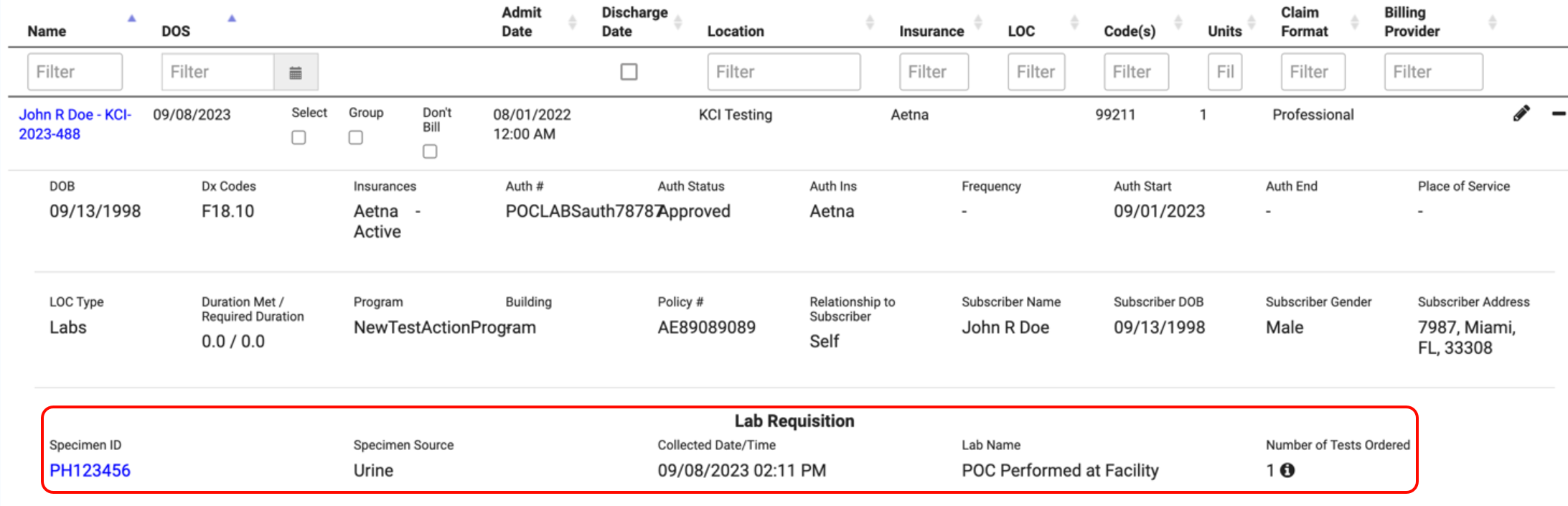 - Billing: We have added the Test Description in the expanded view for customers reviewing Lab billable items in the billing reports.