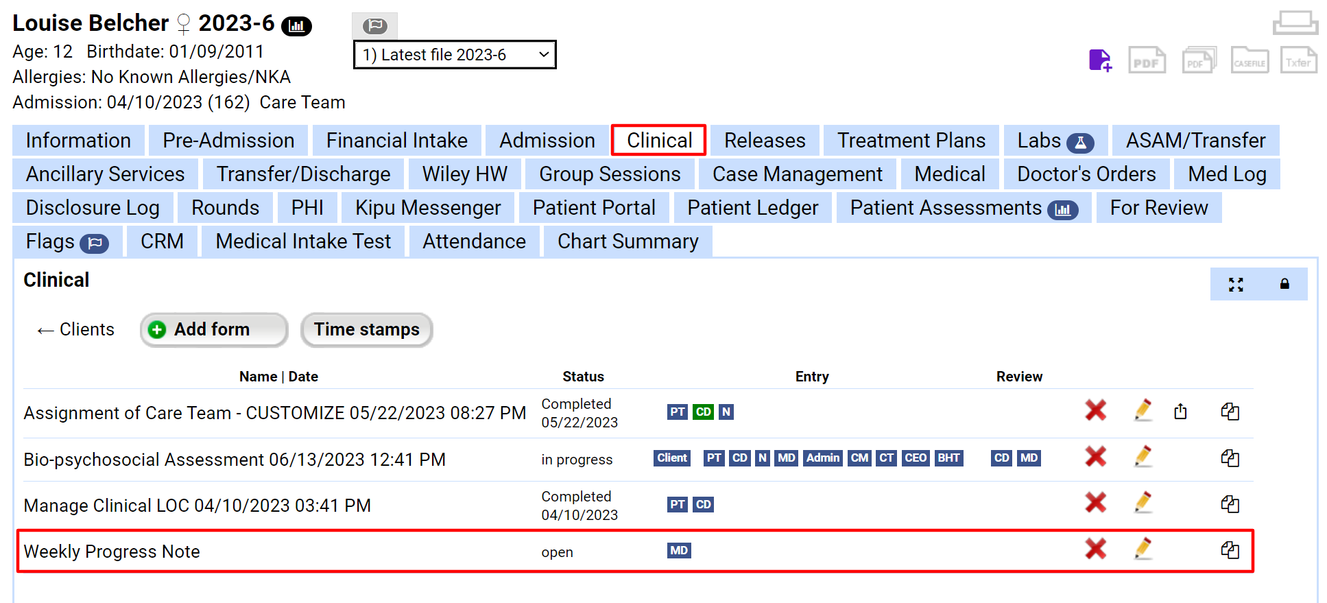 Kipu EMR, Roles: Admin Roles, Feature: Manage Chart Transfers Chart: Information tab/Facesheet, Chart Tracker
