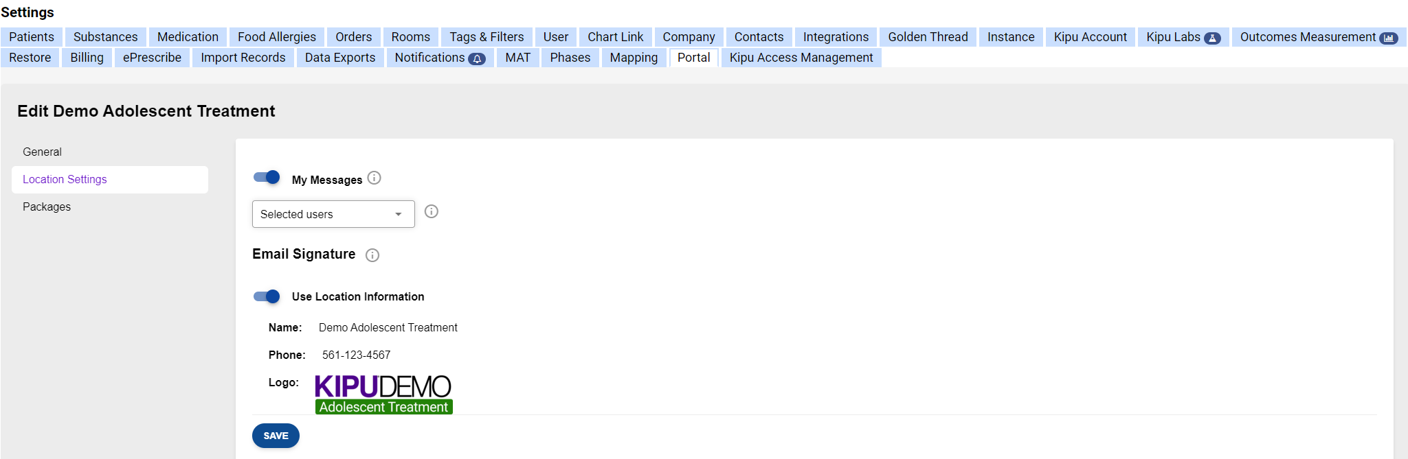 - To select which information to display, users with Manage Portal Settings will navigate to Settings > Portal > Location Settings and set the toggle to the desired option for each location. If disabled, the Company information will be used. If enabled, the Location information will be used. Click here for more information.