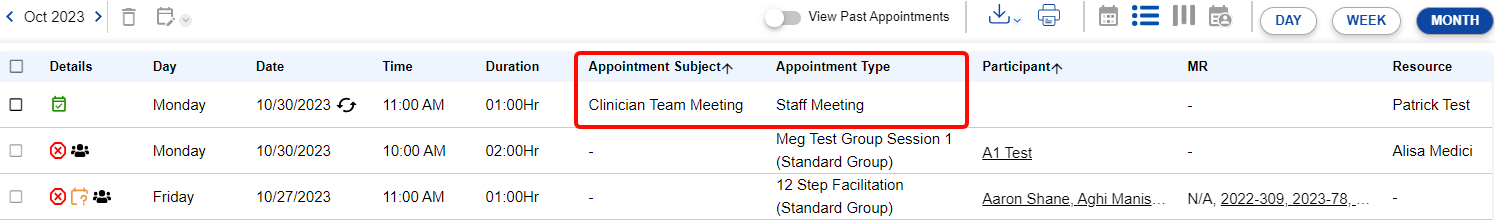 Scheduler List View: We have split the Appointment Subject and Appointment Type into two separate fields on the Scheduler List View and on the export files.