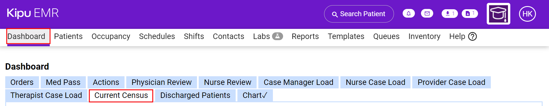 - Select the Dashboard tab from the toolbar.