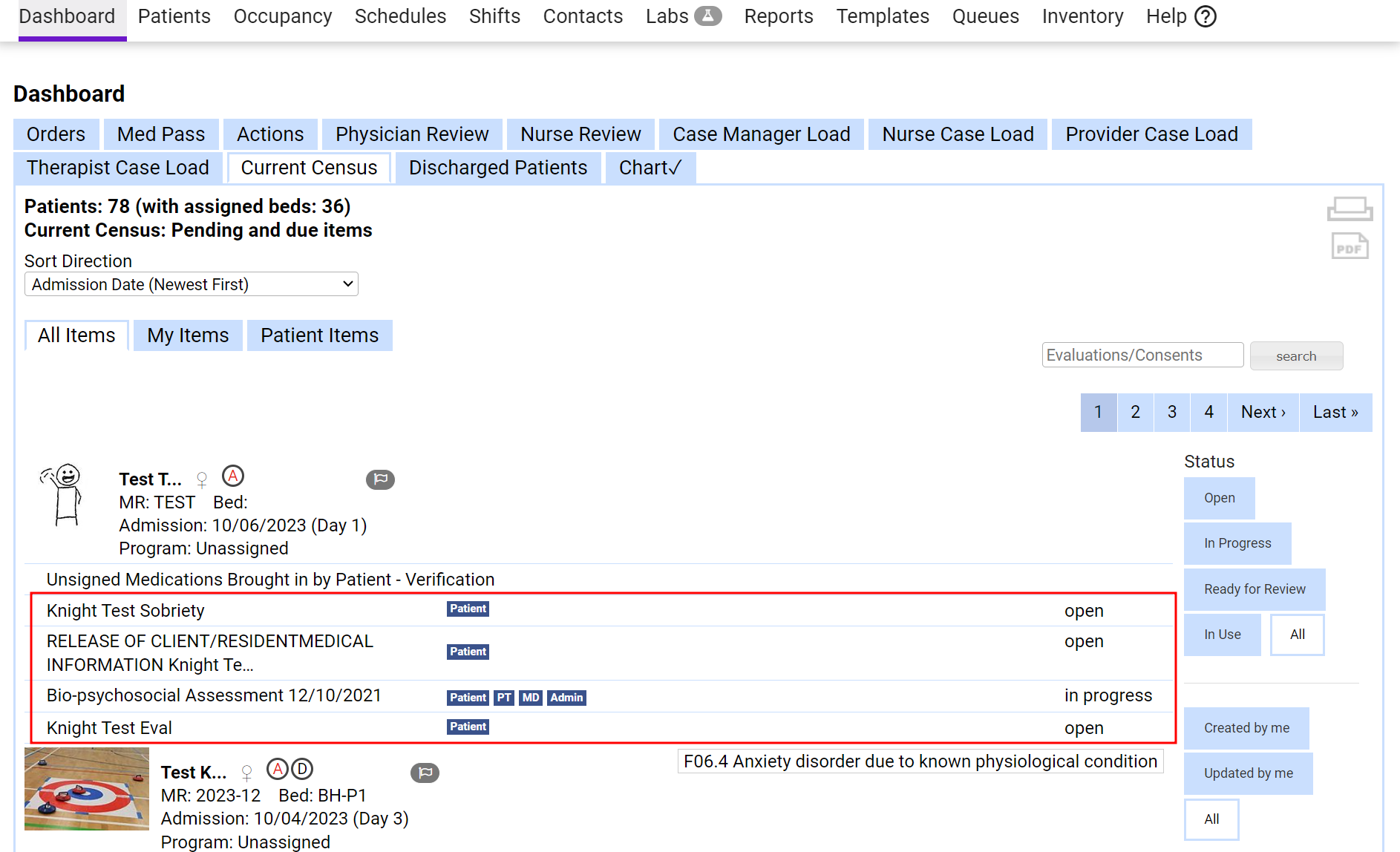 Kipu EMR, Functions, Evaluation Forms, Consent Forms, Dashboard