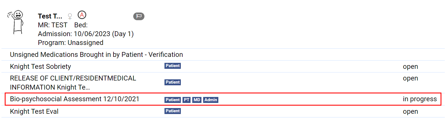 - The forms that need attention will appear in a list under the patient's information.
